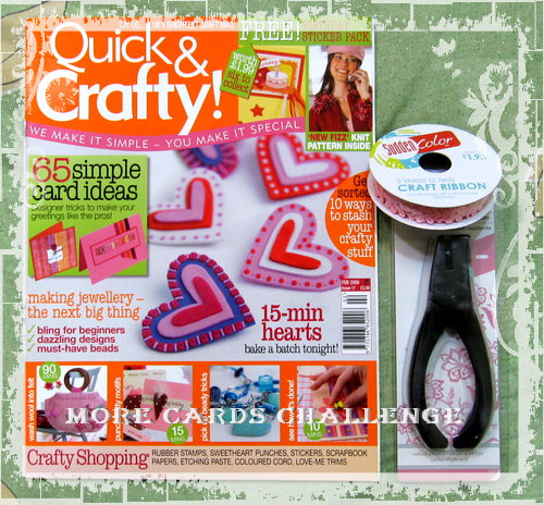 第 65 次挑戰的幸運星獎感謝 -- 寶銓手創工坊 提供的全新EK打洞器一支 & Linda 蓉 提供的緞帶一卷 & 維珍 提供舊手作雜誌一本(得獎者需自行負擔運費)