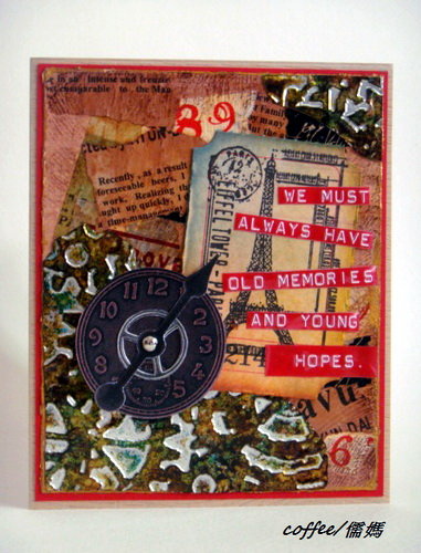這次的挑戰必須要有指定元素,你可以做卡片、小書、相編、書籤、蝶古巴特...等等,不限定卡片樣式(ATC除外)、顏色、構圖、主題、印章品牌、技法、材料,不過您的作品一定要用到至少一樣彩印的工具喔!(印章、銅片、刀模、凹凸版、捲紙、打洞器...)